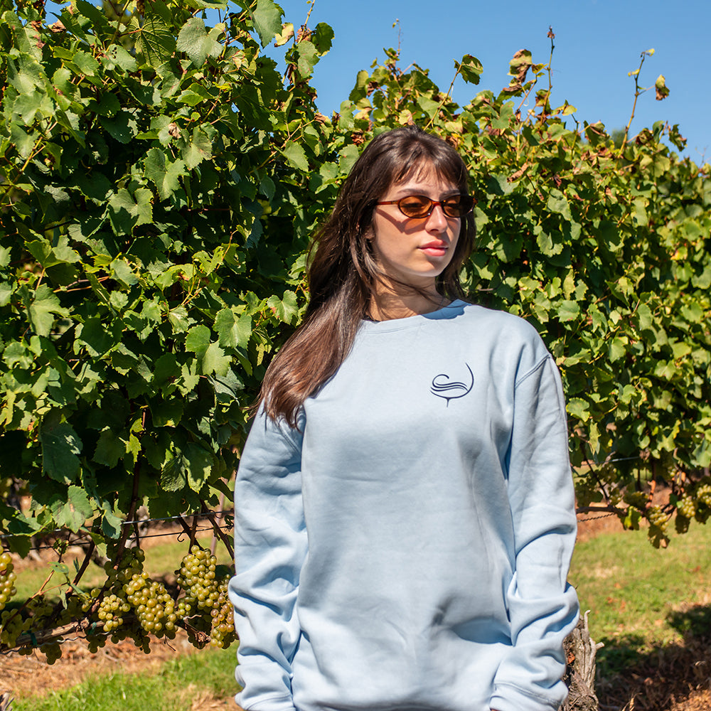 Stay warm and stylish in our gray crew neck sweatshirt, a wardrobe essential for cool fall evenings or relaxed winter nights by the fire. Soft, comfy, and effortlessly versatile, it pairs perfectly with a glass of your favorite wine, whether you’re enjoying the crisp outdoors or lounging indoors. A must-have for wine lovers who cherish comfort and cozy moments. Now in our new logo in two beautiful blue colors!